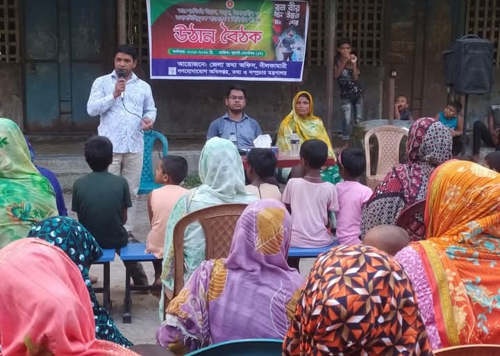 উঠান বৈঠকে ভিডিও কলে যুক্ত হয়ে বক্তব্য রাখেন ফাহিমা জাহান, উপ-পরিচালক, গণযোগাযোগ অধিদপ্তর, ঢাকা। এছাড়াও উপস্থিত ছিলেন জেলা তথ্য অফিসার মোঃ বায়েজীদ হোসেন। রাহিমা ইসলাম( ইউপি সদস্য)সোনারায় এবং সোনারায় ইউনিয়নের এলাকাবাসী।এই উঠান বৈঠকে তথ্য অফিসার বলেন, সুস্থ, শিক্ষা, বাল্য বিবাহ, শারিরীক ও মানসিক স্বাস্থ্য সম্পর্কে আলোকপাতসহ নৈতিকতা ও মূল্যবোধের মাধ্যমে সমাজে মাদকাসক্তির বিরুদ্ধে সামাজিক আন্দোলন গড়ে তুলতে মায়েদের ভূমিকা অপরিসীম। বর্তমানে মোবাইল আসক্তি থেকে শিশুদের দুরে রাখার প্রয়োজনীয়তাও উল্লেখ করেন। এছাড়া বর্তমানে ডেঙ্গু, পানিবাহিত রোগ সম্পর্কে আলোকপাত করেন।