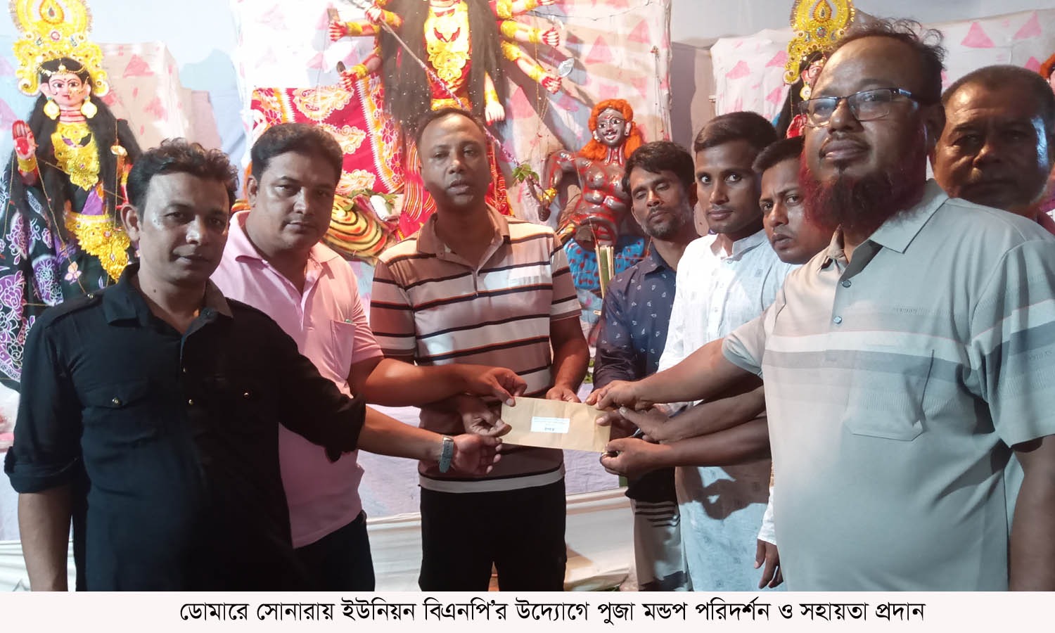 ধর্মীয় ভাবগাম্ভিযের মধ্য দিয়ে আনন্দ ও উৎসব মূখর পরিবেশে সনাতনী সম্প্রদায়ের সবচেয়ে বড় ধর্মীয় উৎসব শারদীয় দুর্গোপুজা। উৎসাহ ও উদ্দিপনার মধ্য দিয়ে সনাতনধর্মালম্বী ভাইবোনদের আনন্দের যেন শেষ নেই। পুজাকে সামনে রেখে ডোমার উপজেলার সোনারায় ইউনিয়ন বিএনপি, কৃষকদল ও শ্রমিক দলের যৌথ উদ্যোগে ইউনিয়নে প্রতিটি পুজা মন্ডপ পরিদর্শন করেন এবং ডোমার ডিমলার জনপ্রিয় নেতা ইঞ্জিঃ শাহরিন ইসলাম চৌধুরী তুহিন এর পক্ষ থেকে আর্থিক সহায়তা প্রদান করা হয়।