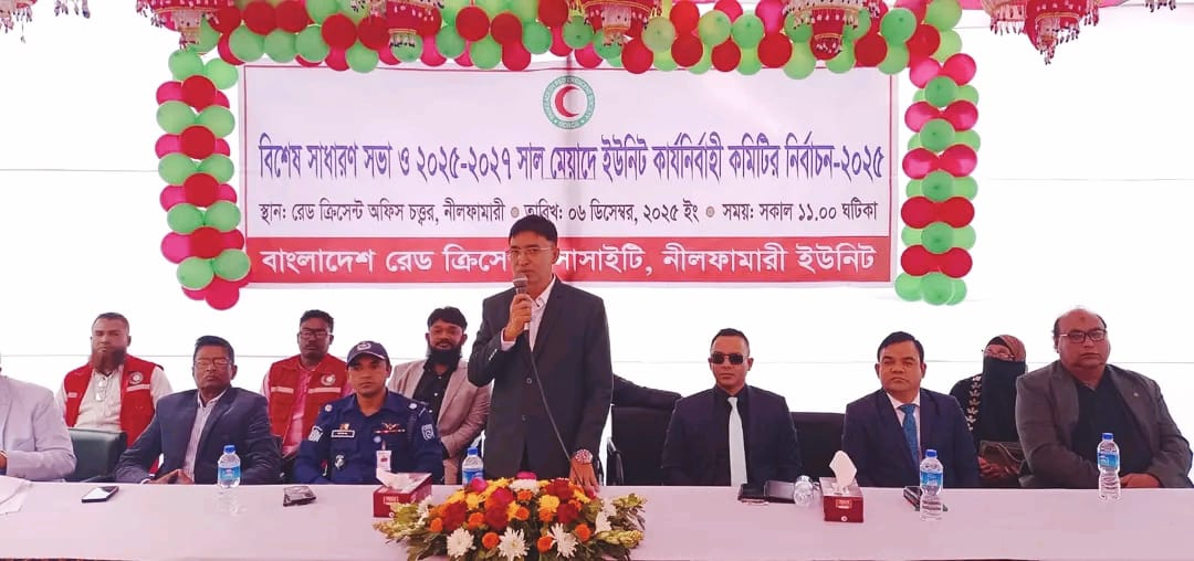 নীলফামারীতে বাংলাদেশ রেডক্রিসেন্ট সোসাইটি ইউনিটের বিশেষ সাধারণ সভা অনুষ্ঠিত হয়েছে শনিবার (৬ ডিসেম্বর) দুপুরে ইউনিট কার্যালয় প্রাঙ্গণে। সভা শেষে ২০২৫-২০২৭ মেয়াদের কার্যনির্বাহী কমিটির নির্বাচনে বিজয়ীদের নাম ঘোষণা করা হয়।