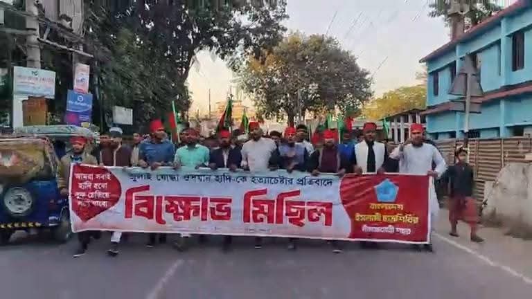 ঢাকা-৮ আসনের স্বতন্ত্র প্রার্থী ও ইনকিলাব মঞ্চের নেতা শরীফ ওসমান হাদীর ওপর হামলার প্রতিবাদে নীলফামারীতে বিক্ষোভ মিছিল করেছে বাংলাদেশ ইসলামী ছাত্র শিবির।